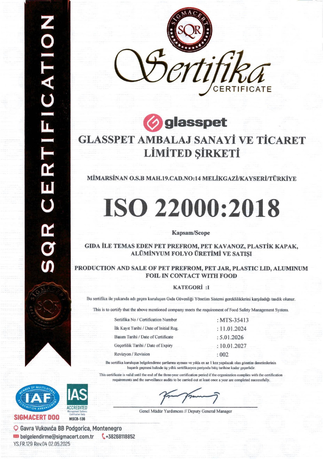 Üretim süreçlerimiz uluslararası gıda güvenliği ve kalite yönetim sistemleri tarafından denetlenmekte ve onaylanmaktadır.